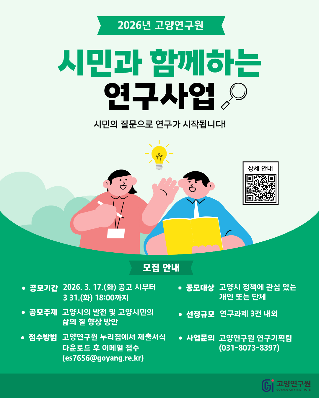 2026년 고양연구원 「시민과 함께하는 연구사업」 모집 재공고