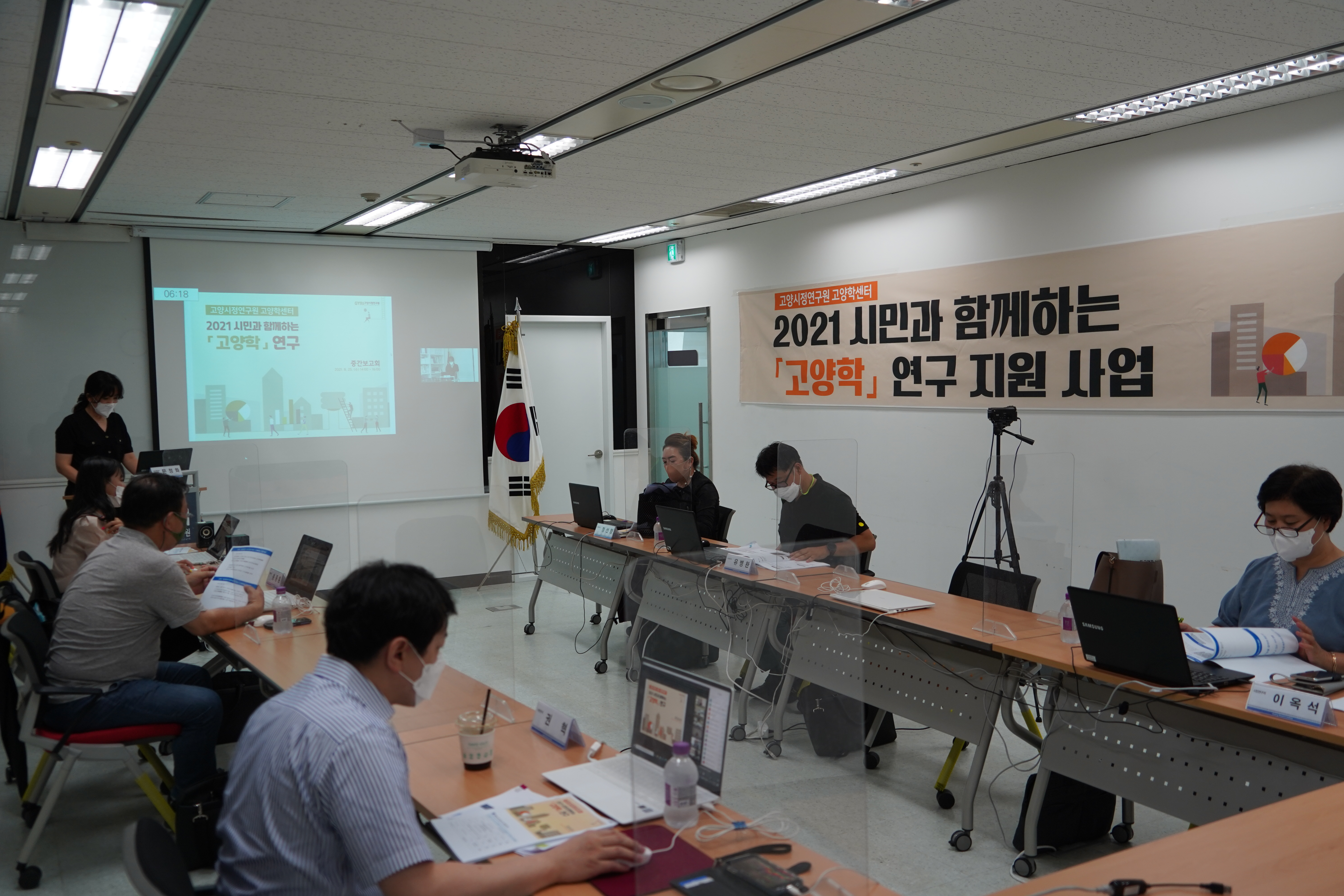 2021 시민과 함께하는 「고양학」 연구지원사업의 중간보고회가 ‘사회적 거리두기 4단계’를 준수하여 오프라인과 온라인으로 개최되었습니다.