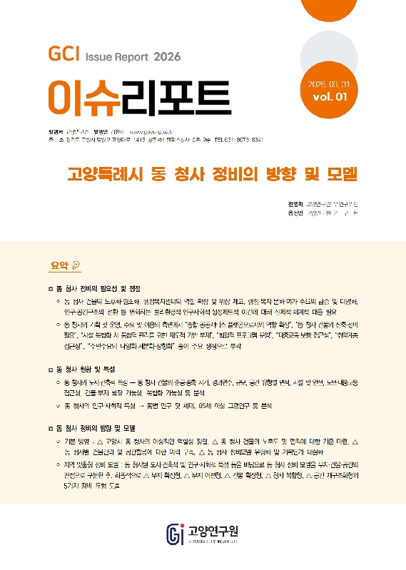 고양연구원은 시정을 선도하는 비전을 제시하고 중장기 미래 전략을 수립하는 등 고양특례시의 싱크탱크 역할을 하고 있습니다.
