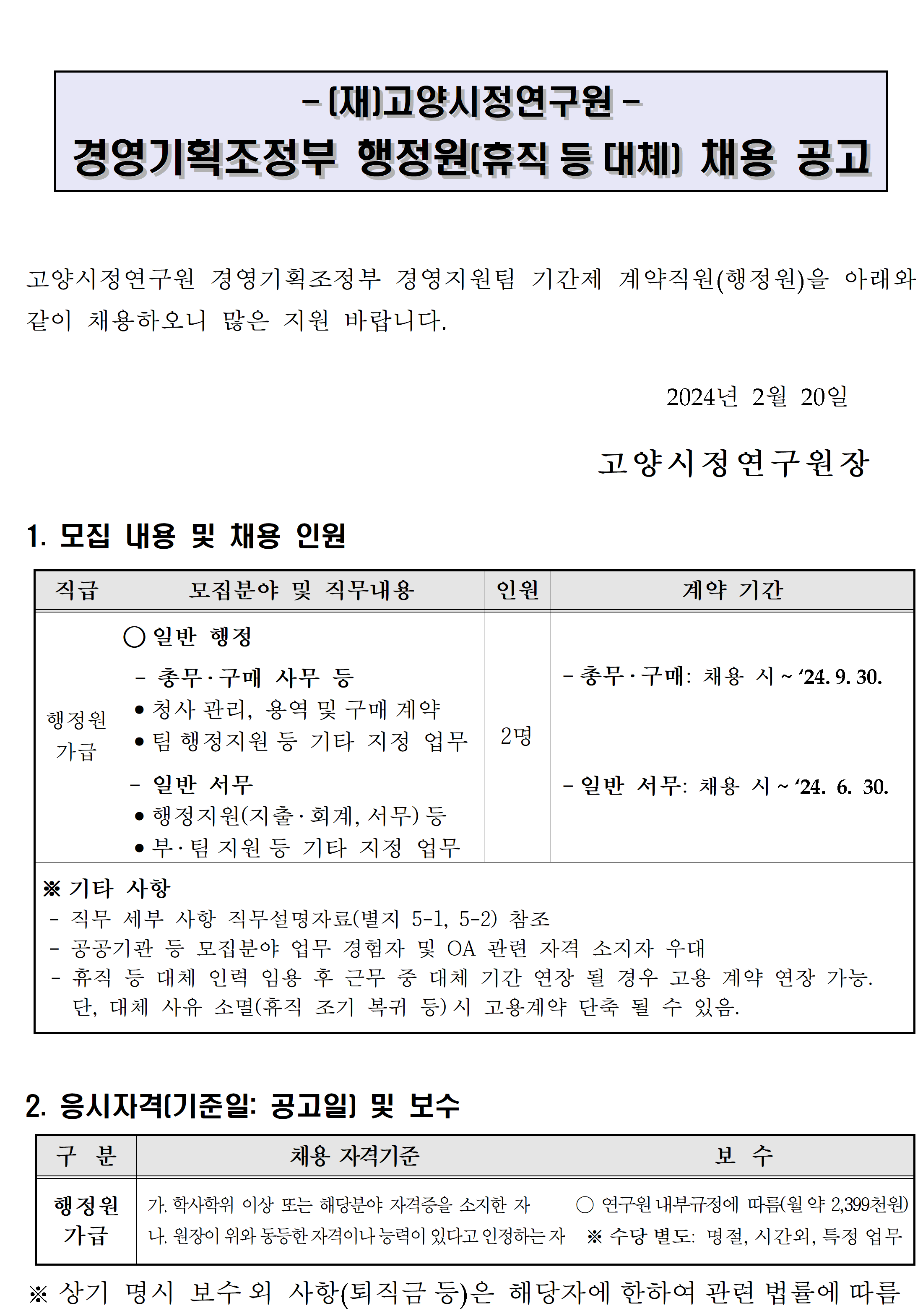 최종_20240220_정원외 직원(행정원) 채용 공고문 (지원서 서식 포함).hwp