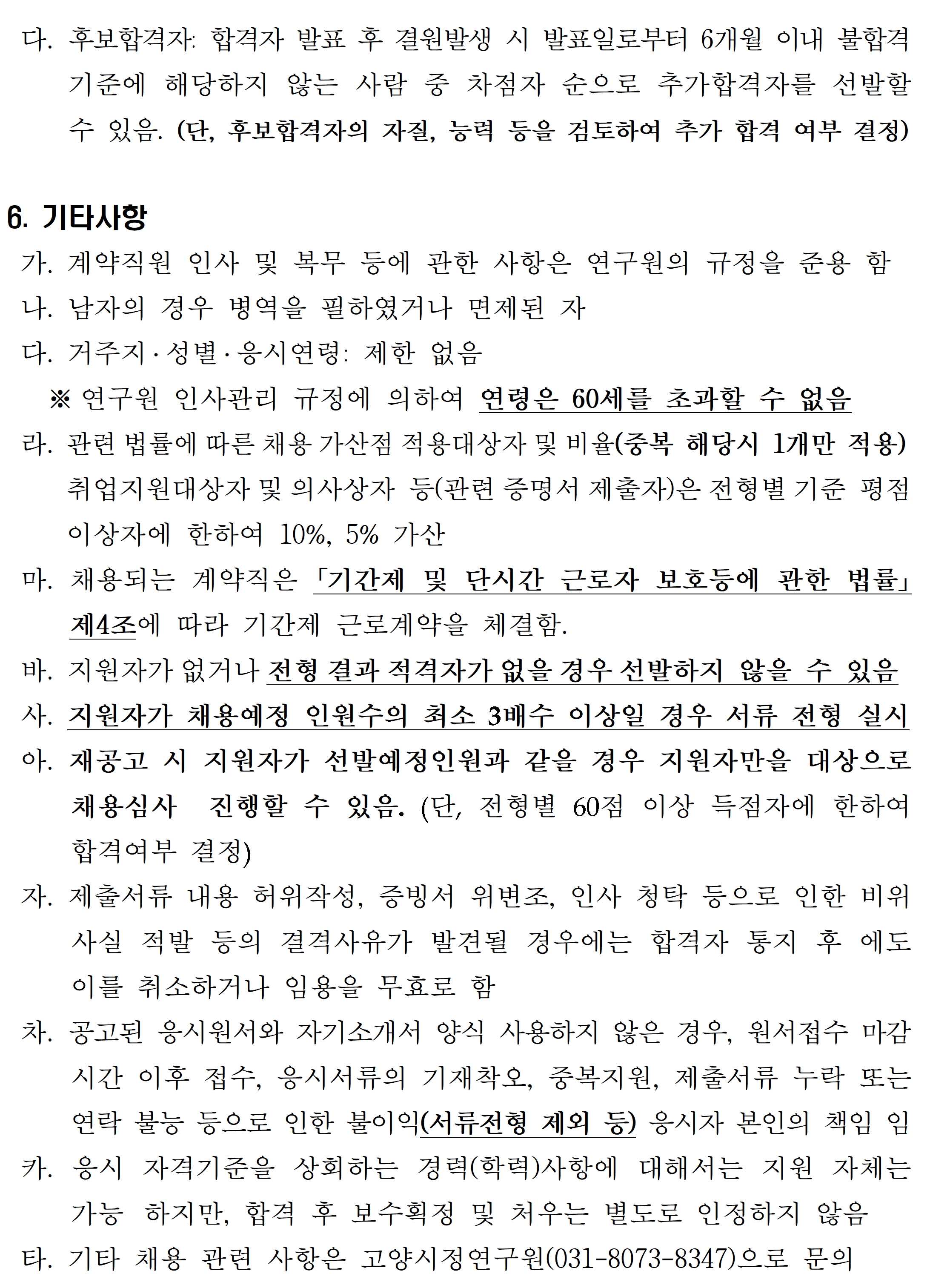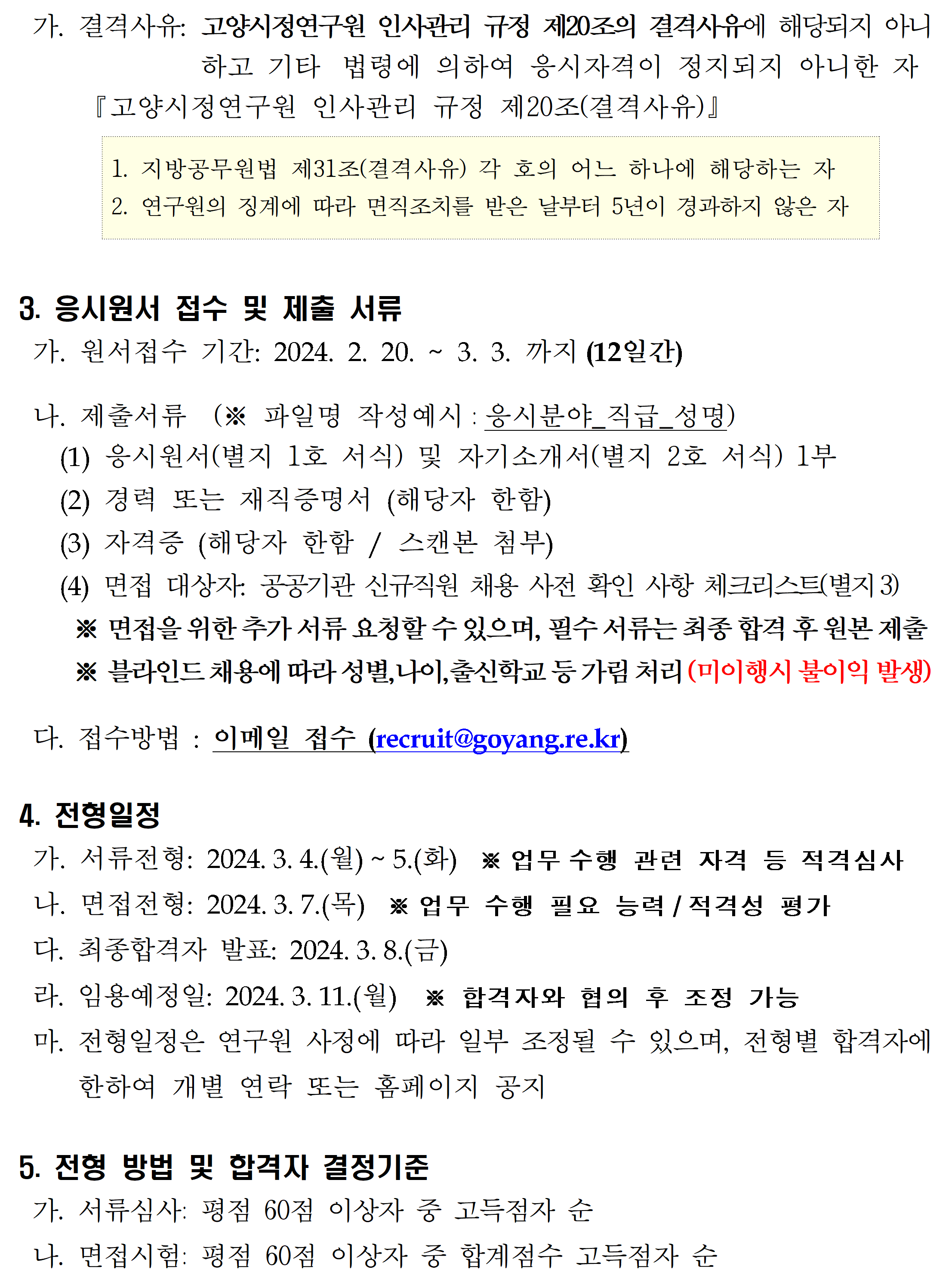 고양시정연구원 경영기획조정부 행정원(휴직등 대체) 채용 공고