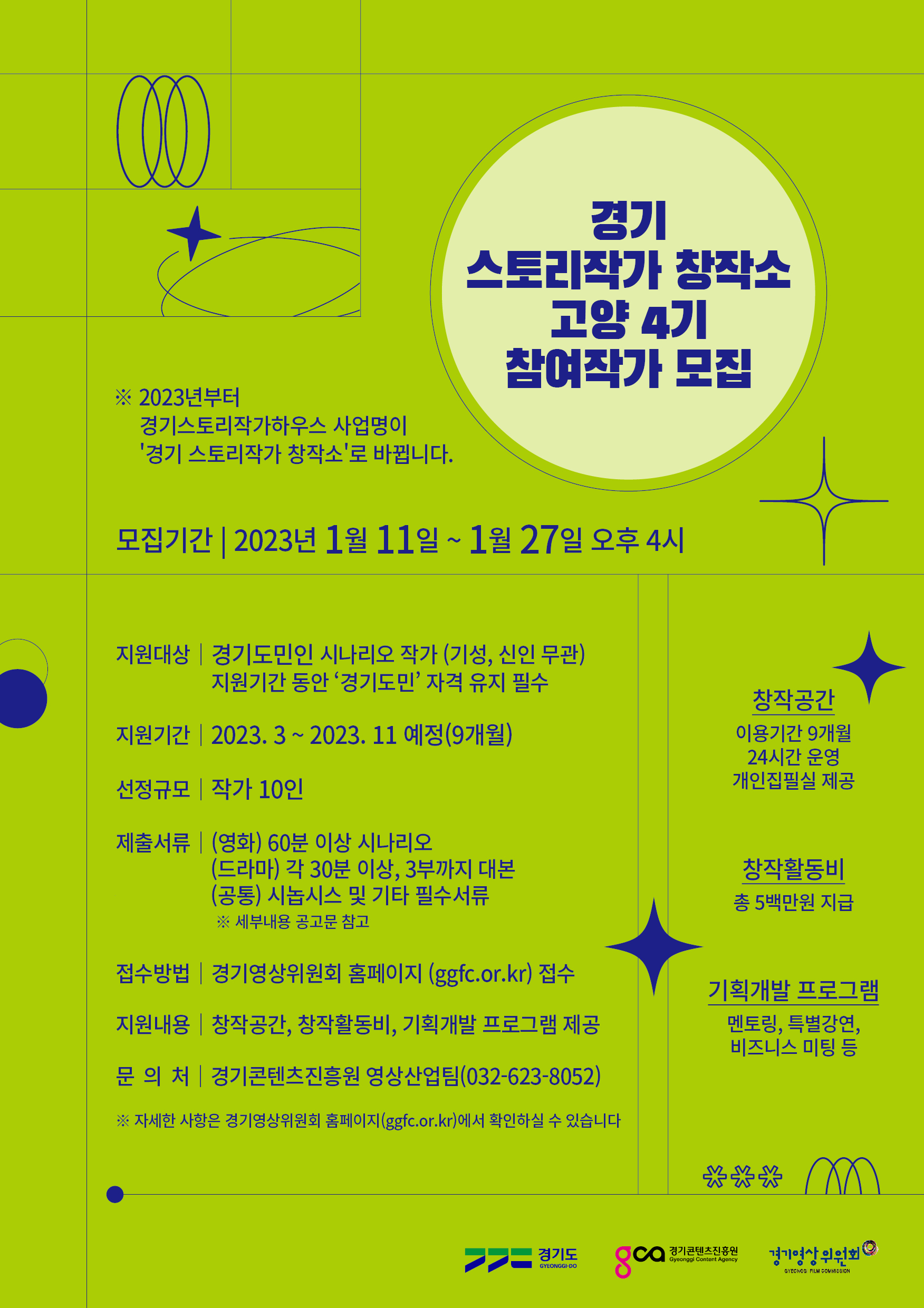 「경기 스토리작가 창작소 고양」 제4기 작가 모집
