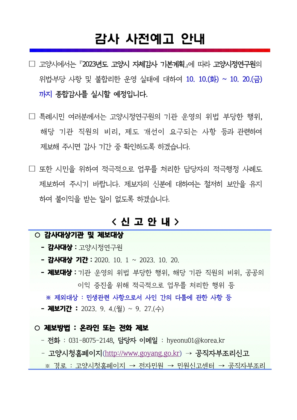 [타기관 정보] 고양산업진흥원 제10대 원장 공개모집 공고