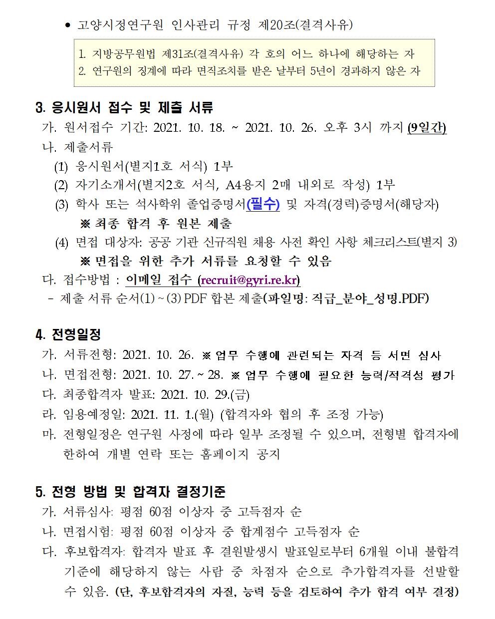 [제2021-42호] 고양시정연구원 2021년 위촉연구원 / 연구보조원 채용 공고(재공고)