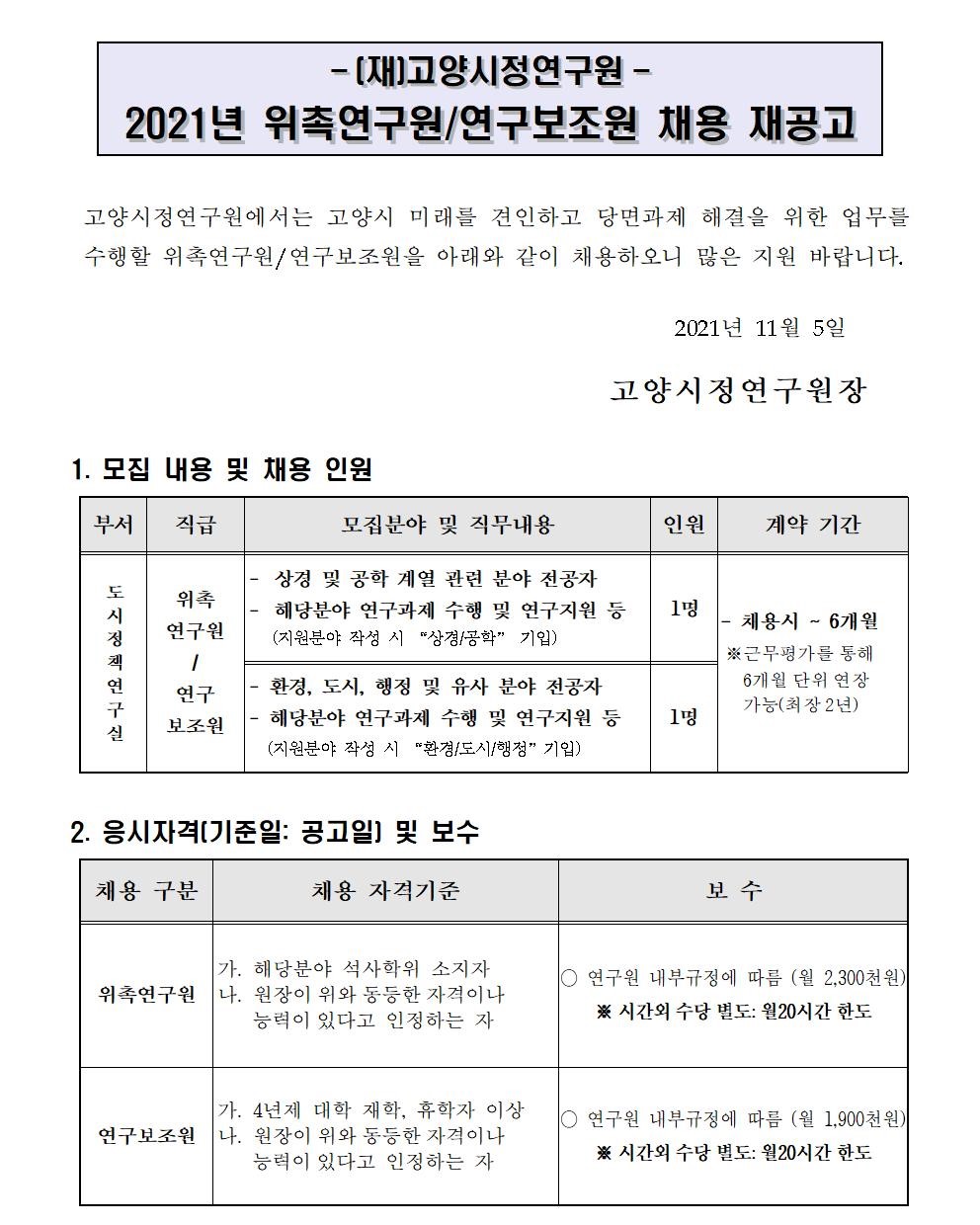 (상경공학_도시환경행정) 고양시정연구원 2021년 정원외 직원 채용 공고문(재공고)(지원서 서식 포함).hwp