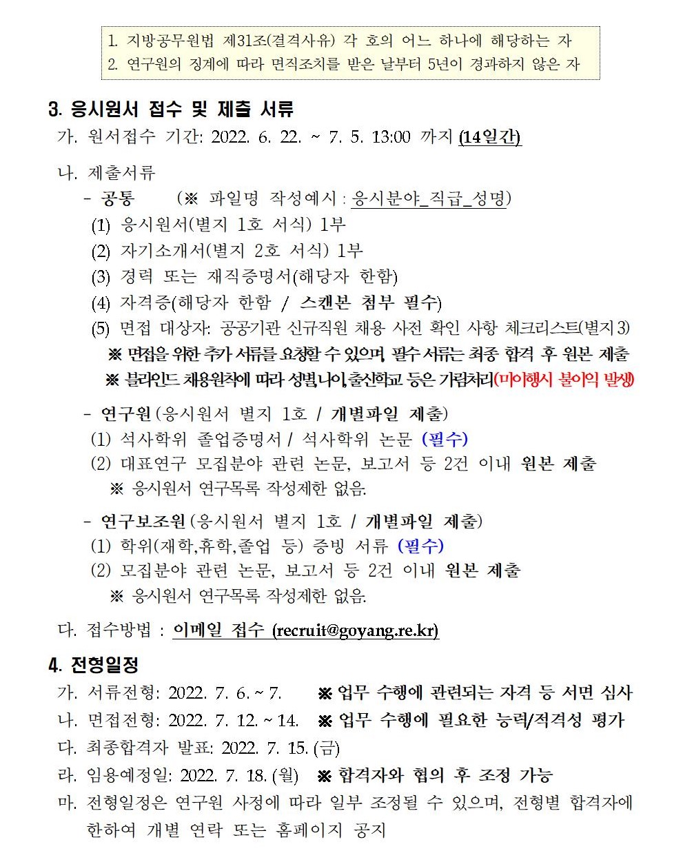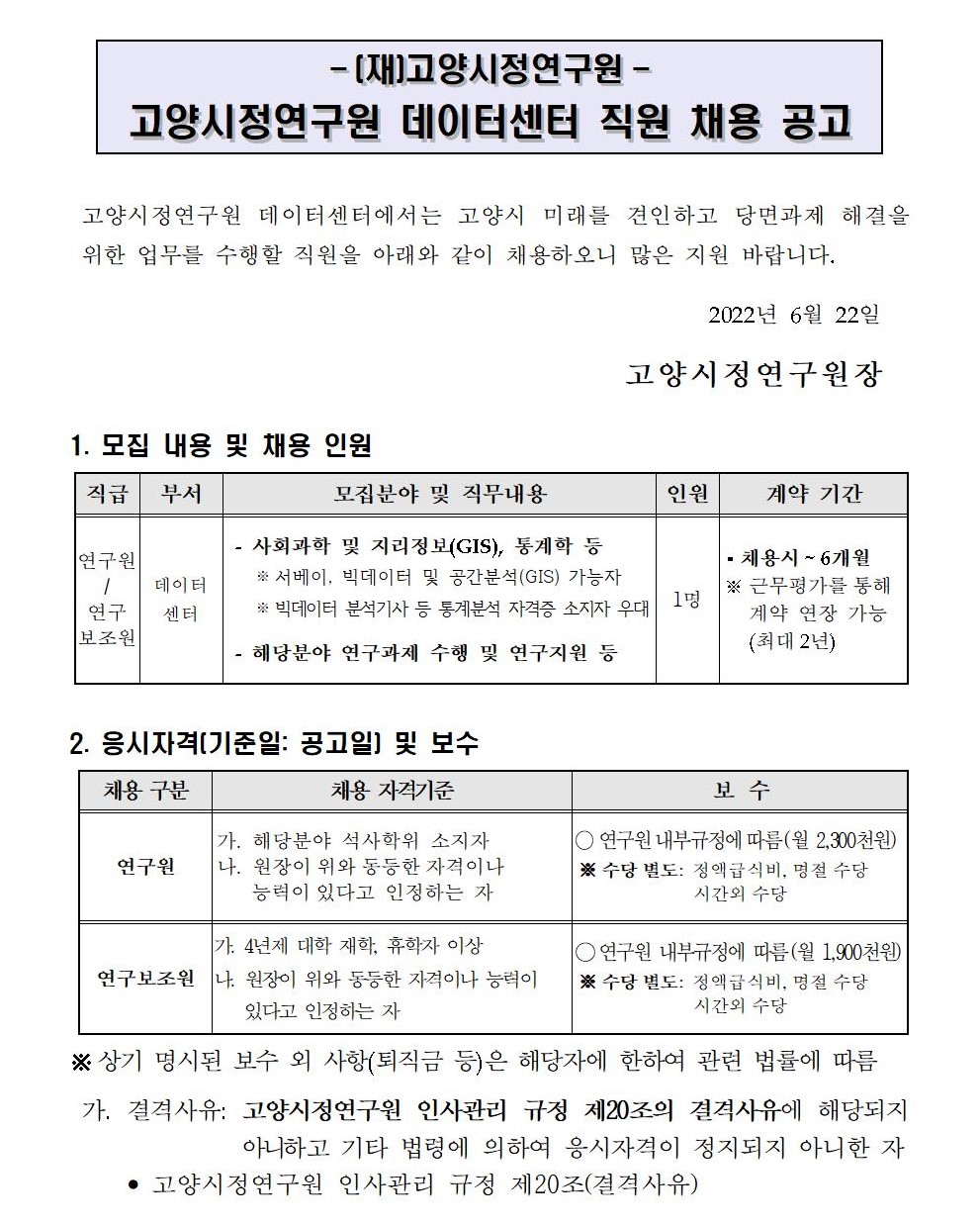 [제2022-25호] 고양시정연구원 정원외 직원(데이터센터) 채용 공고