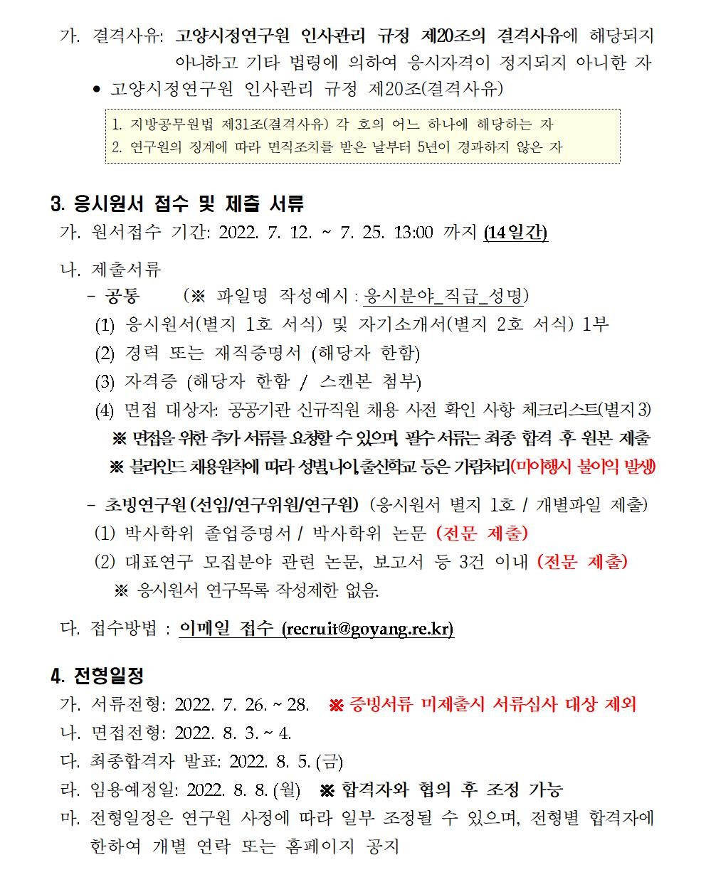 [제2022-29호] 고양시정연구원 정원외 직원(도시정책연구실) 채용 공고
