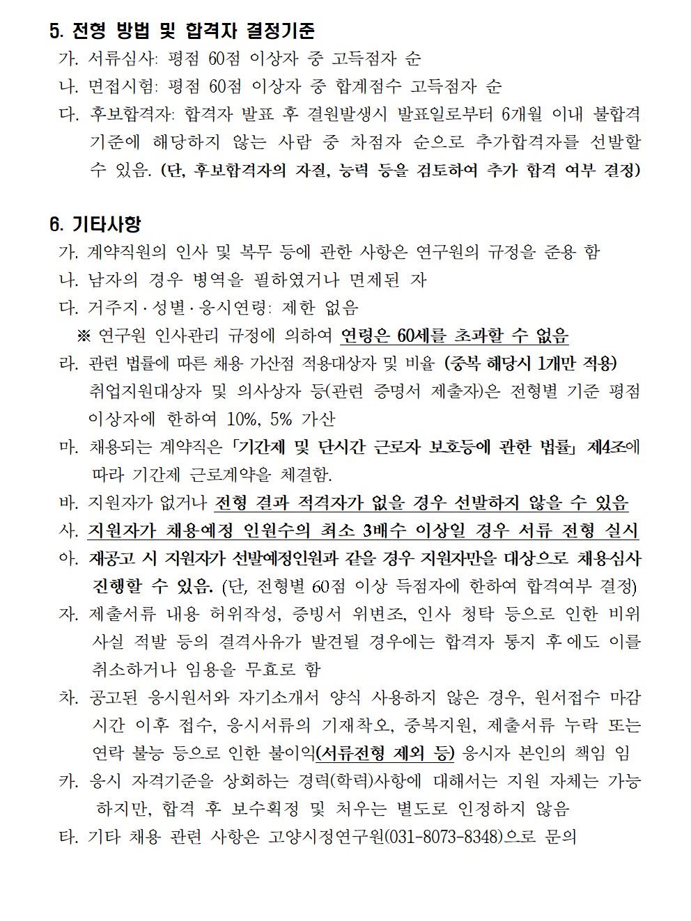 [제2022-34호] 고양시정연구원 정원외 직원(도시정책연구실/데이터센터) 채용 면접 전형 결과 공고