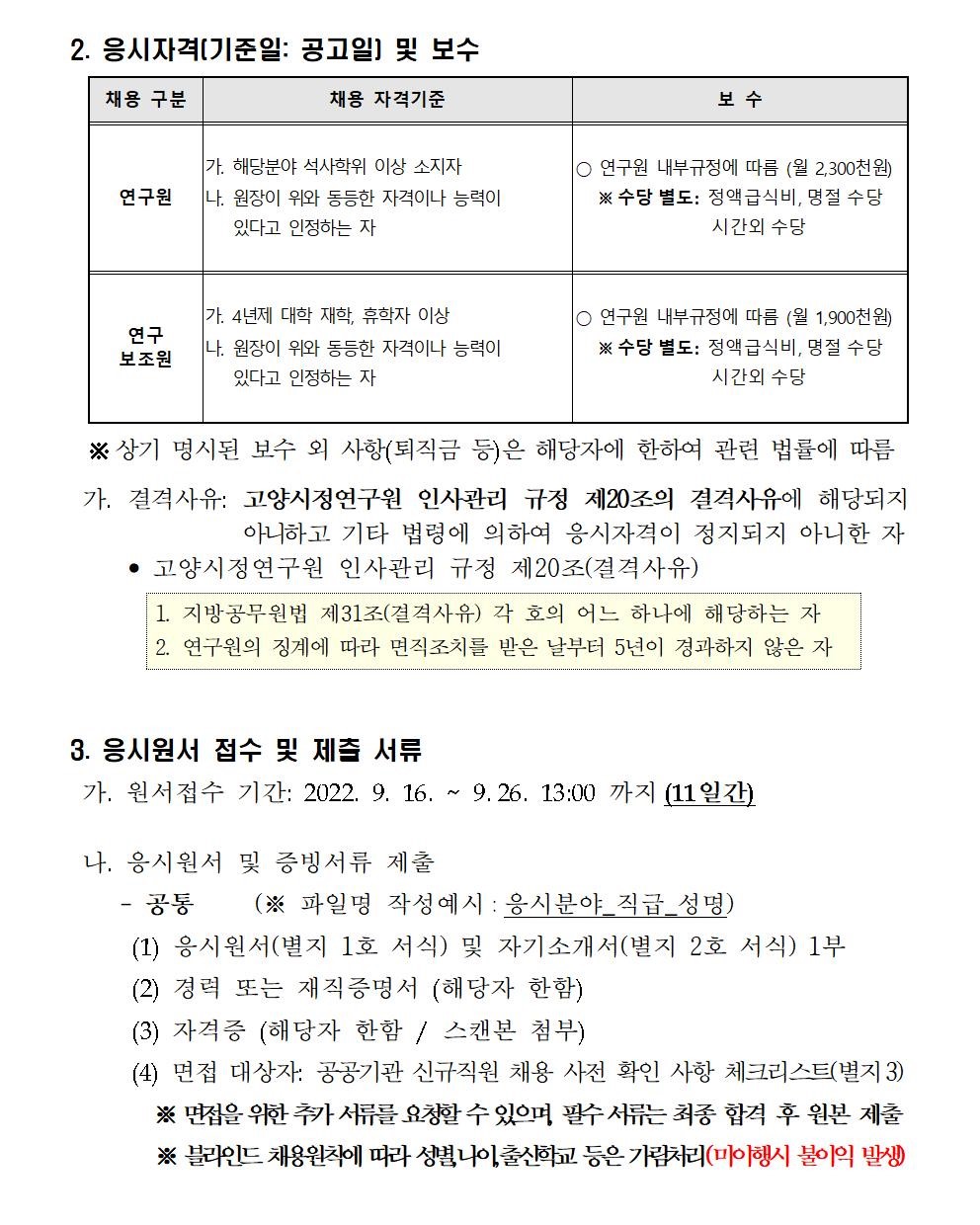 고양시정연구원 정원외 직원 채용 공고문(지원서 서식 포함)(통합 재공고).hwp