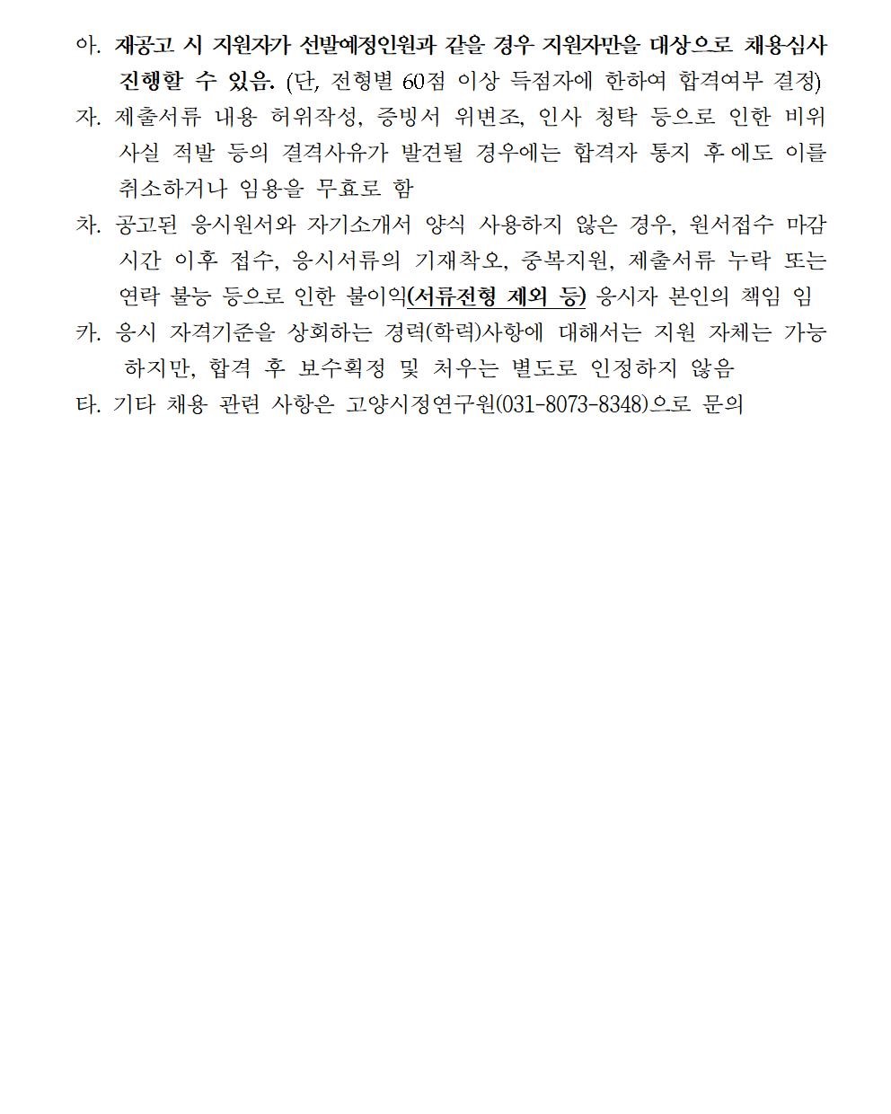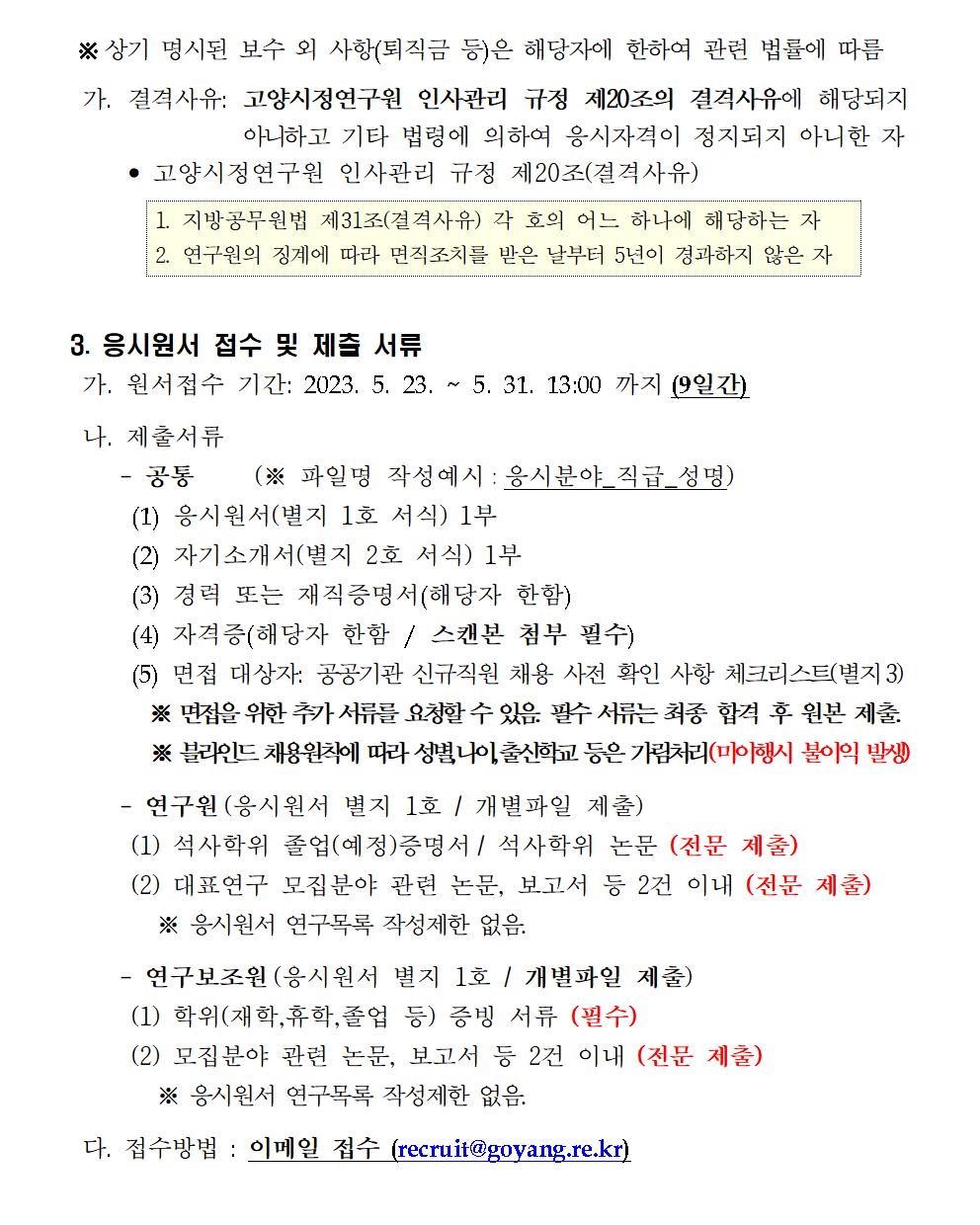 [제2023-12호] 고양시정연구원 정원외 직원(연구원) 채용 공고