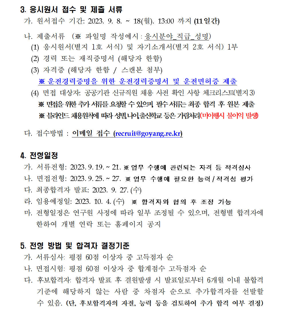 [제2023-27호] 고양시정연구원 연구원/연구보조원 채용 공고 (재공고)