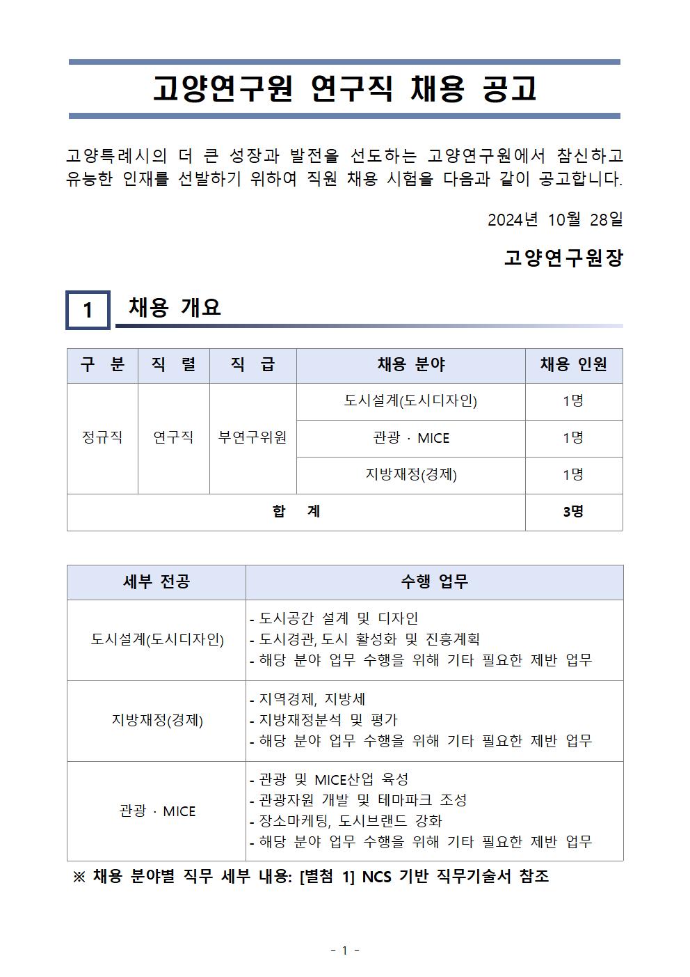 고양연구원 연구직 채용 공고문 및 지원 서식.hwp