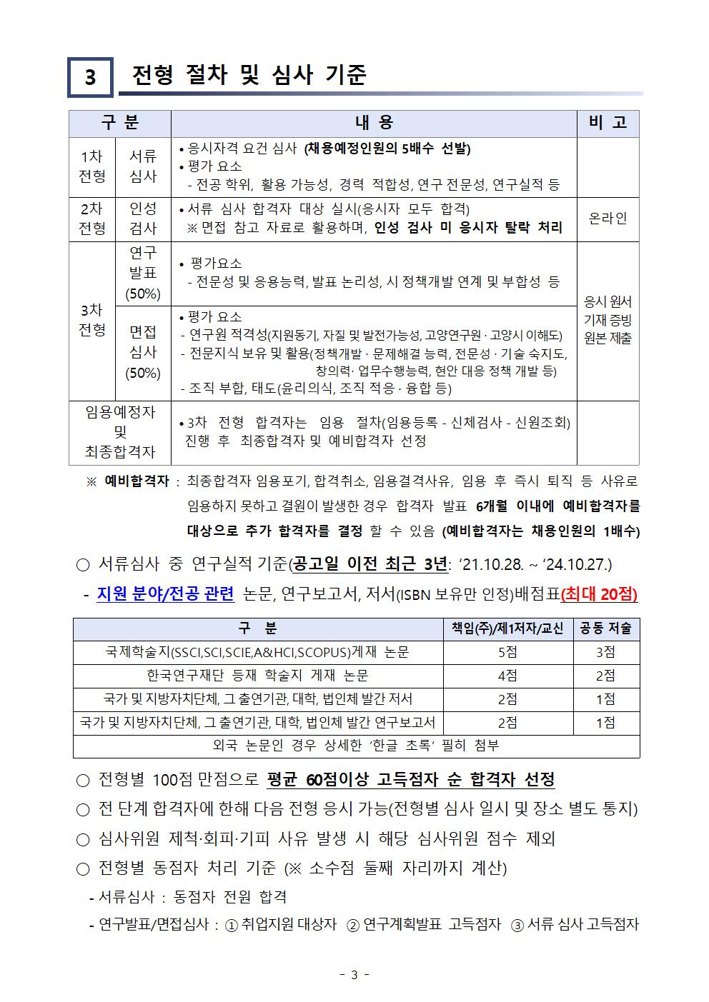 [제2024-11호] 연구직 채용 서류심사 합격자 및 인성검사 시행 계획 공고