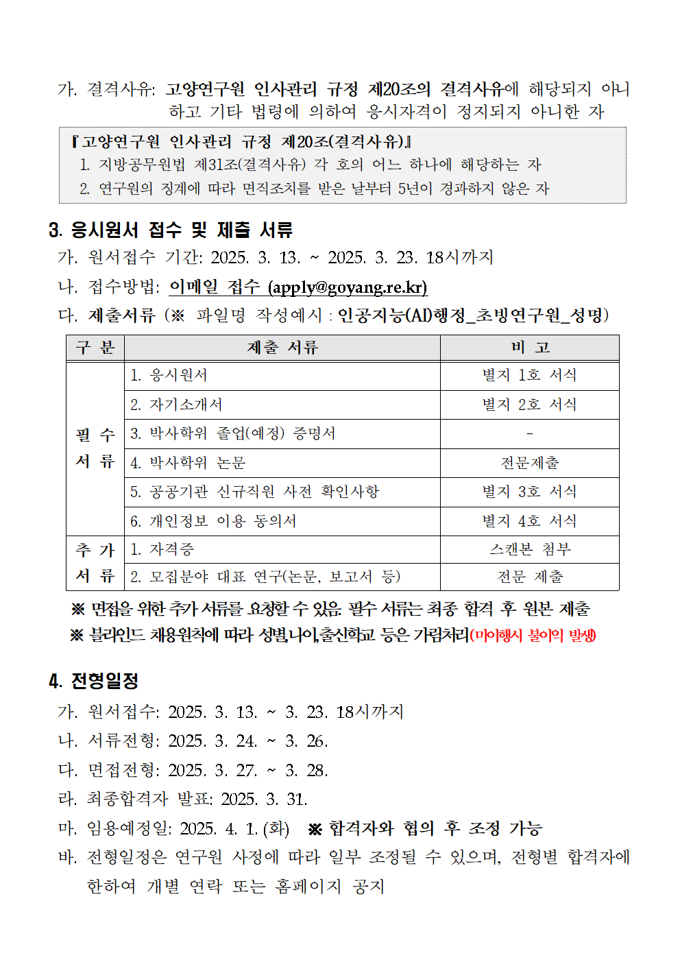 [제2025-03호] 고양연구원 정원외 직원(연구원) 채용 공고