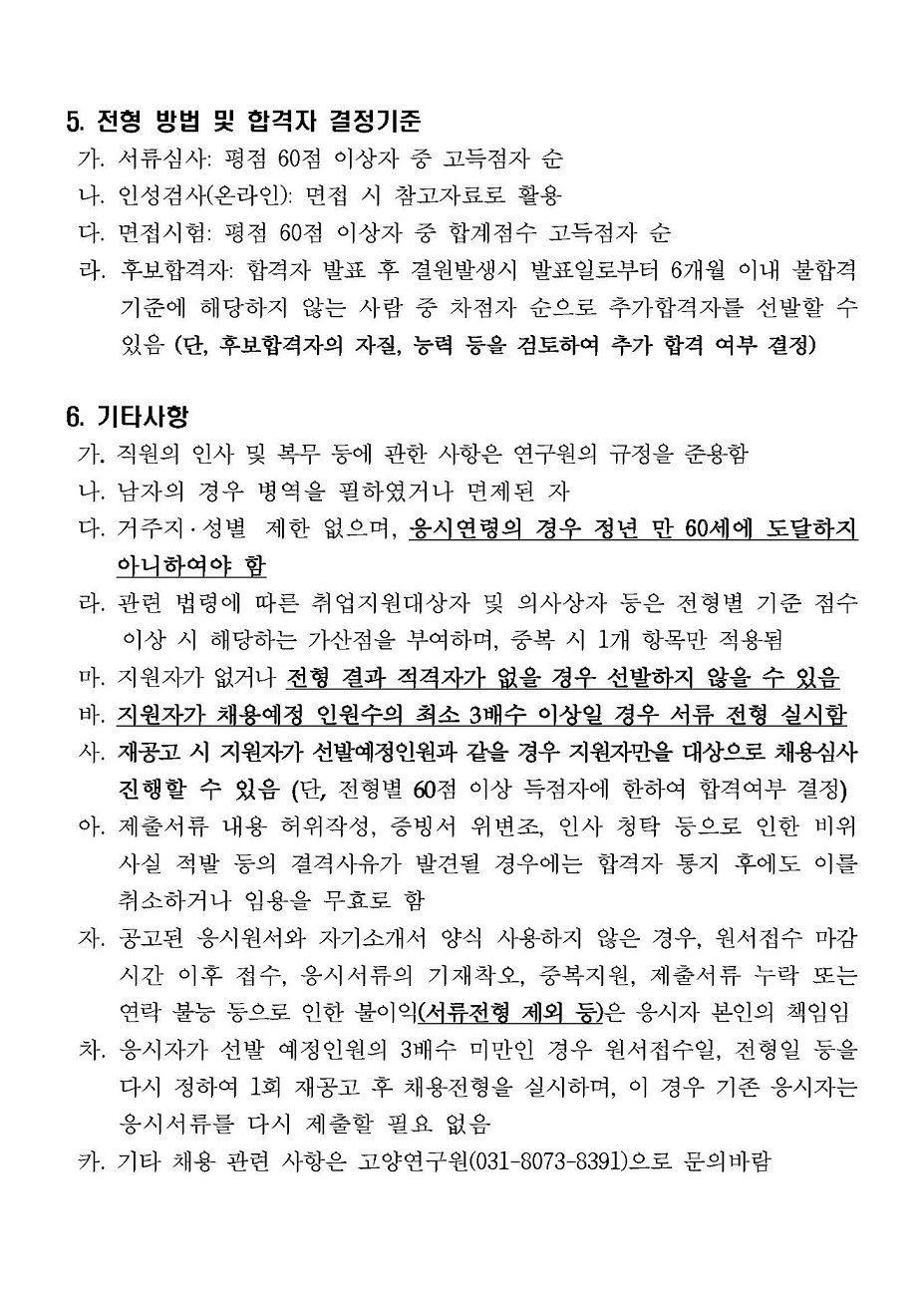 [제2025-03호] 고양연구원 사회과학분야 연구원 채용 최종 합격자 공고
