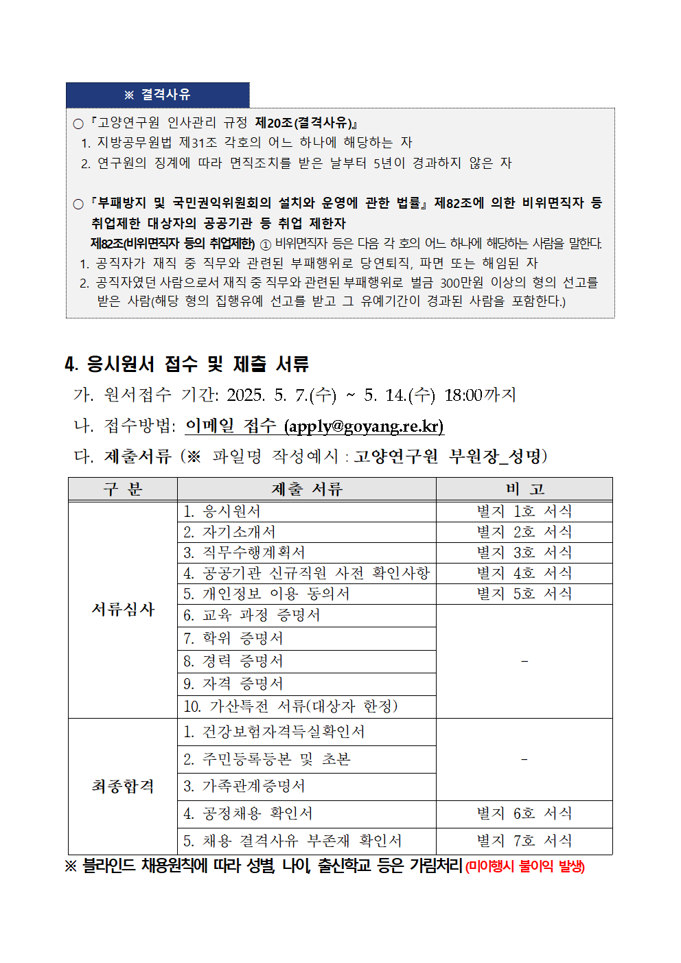 [제2025-5호] 고양연구원 일반직(경력직) 직원 채용 서류심사 합격자 및 인성검사 시행 계획 공고