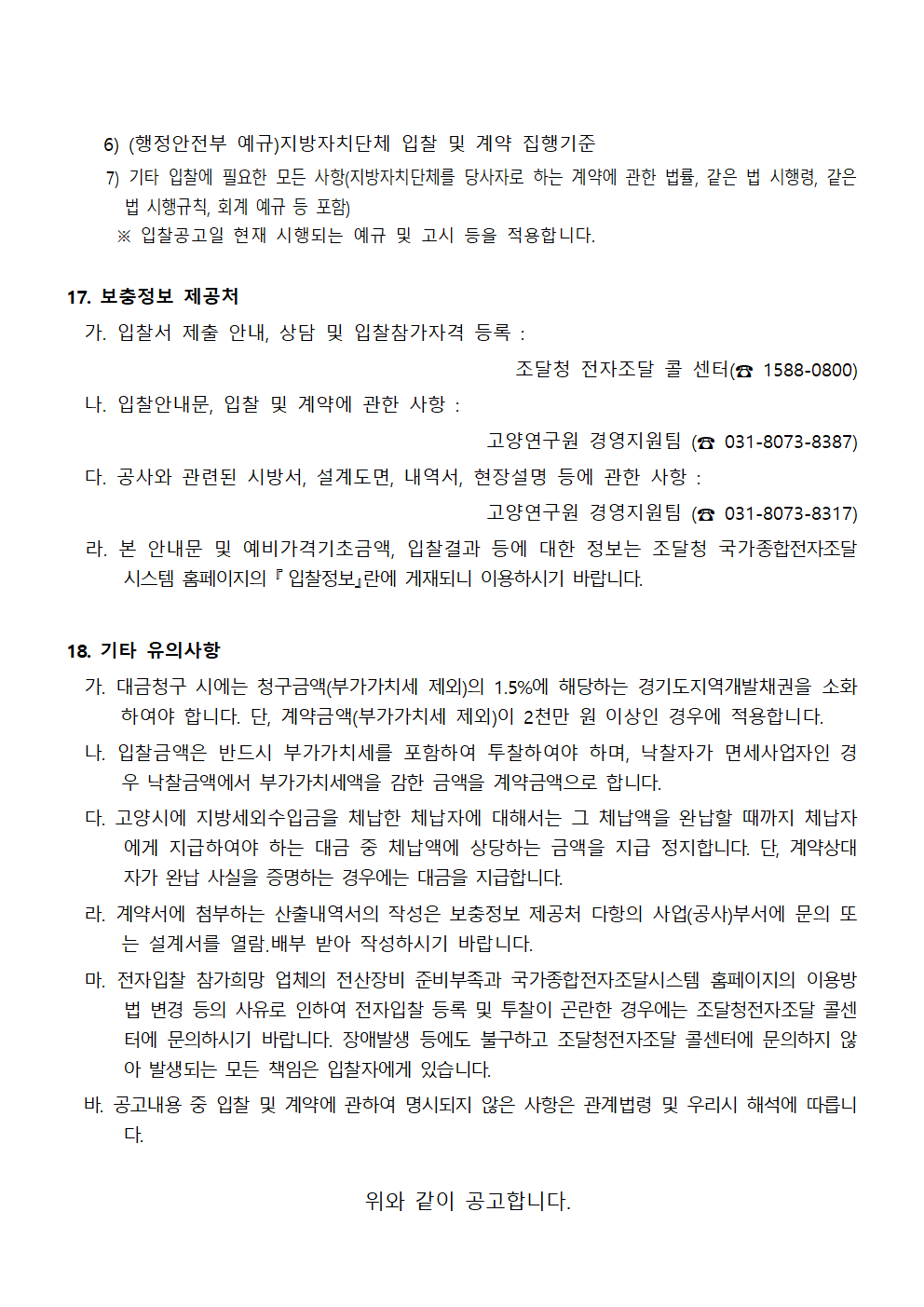 [제2025-3호] 고양연구원 창조혁신캠퍼스 리모델링 건축기계공사 입찰공고(긴급)