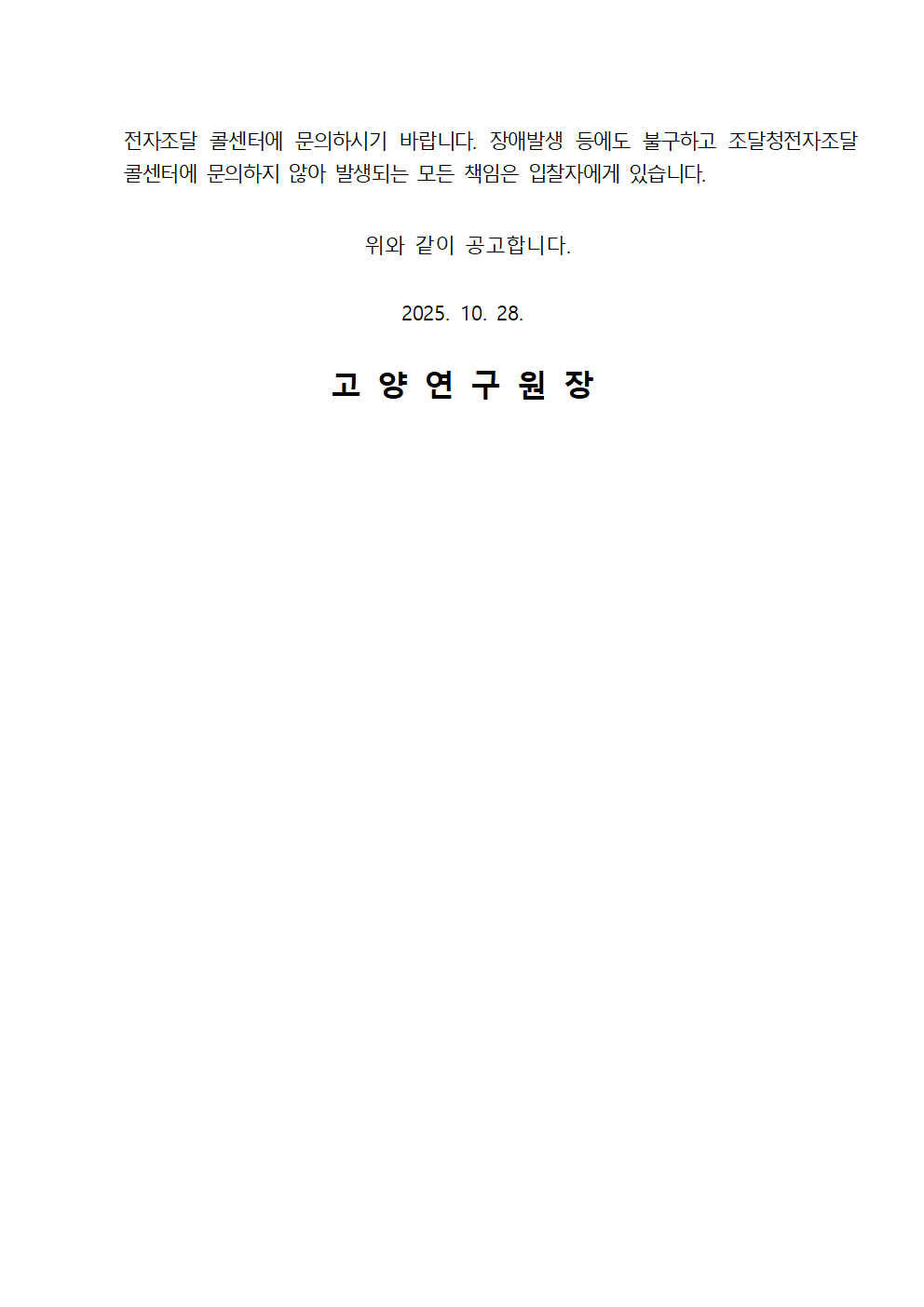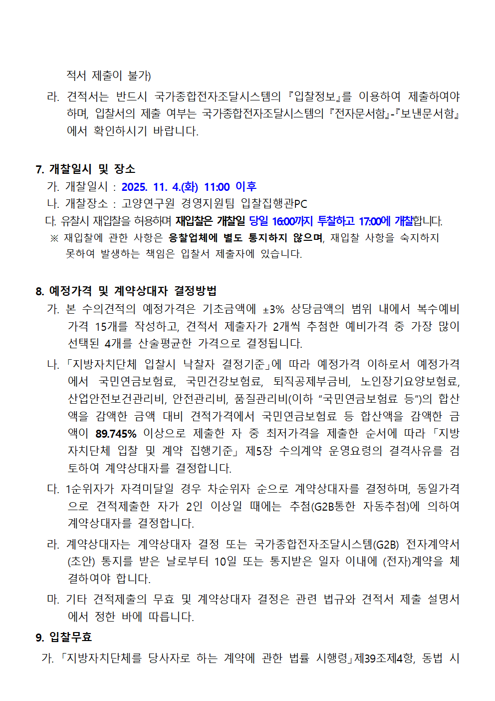 [제2025-4호] 고양연구원 창조혁신캠퍼스 리모델링 전기공사 입찰공고(긴급)