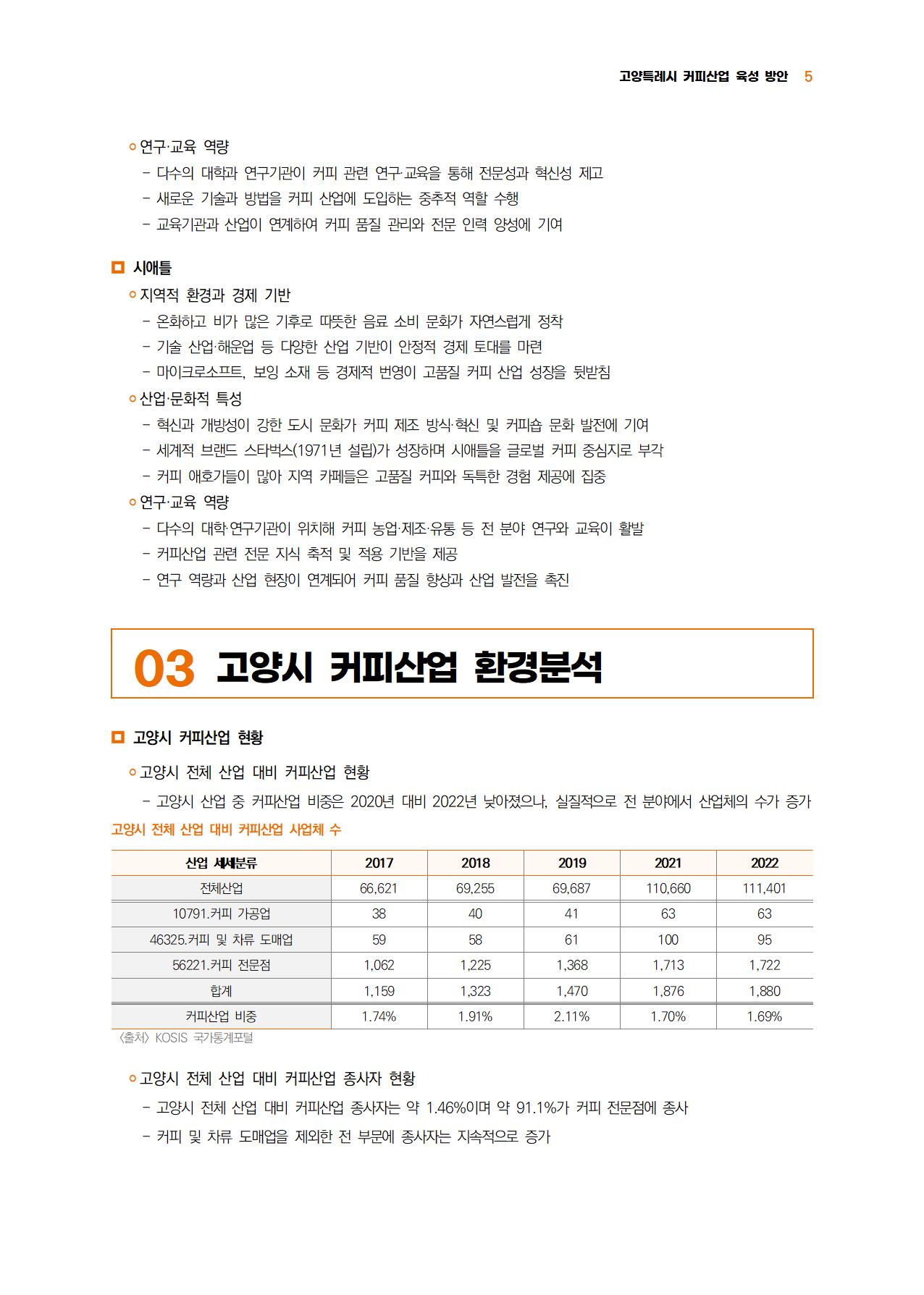 고양특례시 커피산업 육성 방안